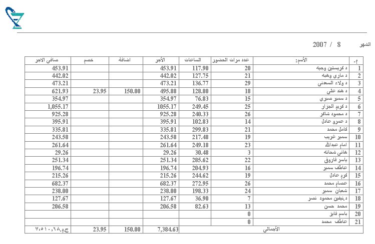 | نظام آلي متطور يعمل بمثابة المراقب الامين لتسجيل حضور وانصراف الموظفين اليا بواسطة الماوس بدون الحاجة لشراء اى اجهزة ويجعل حساب رواتب الموظفين والعمال المبين على ساعات الحضور والانصراف الفعلية سهلة جدا وتتم بسرعة ودقة وسرية تامة ويساعد النظام على التخلص من ساعات العمل الضائعة والارباك الذي يسببه حساب رواتب الموظفين عند بداية كل شهر كما يقضى على مشكلة التأخير فى الحضور عن طريق خصم دقائق التأخير من العامل اليا.