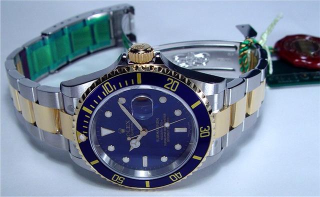 | ساعة رولكس ساب ماريننر - سيراميك هاف جولد بلو - موديل 2009 شراء فى 14 اكتوبر 2009 من محل روشن بيك = دورتمون - ألمانيا الإتحادية ضمان سنتين + كامل الملحقات البوكس الدلايات وكارت الضمان الدولى