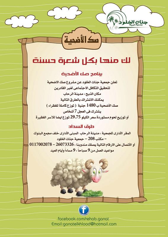 | صك أضحيتك هايطعم ناس كتير ... ناس مش بتقدر تأكل لحم طوااال العام بس بيستنوا العيد عشان يفرحوا ويطعموا اولادهم